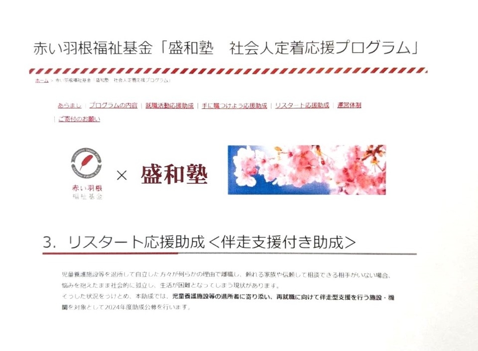 いっぽは、赤い羽根福祉基金「盛和塾 社会人応援プログラム」リスタート応援助成<伴走支援付き助成>を受けています。
