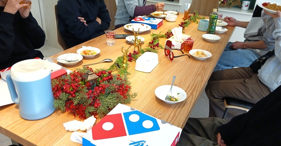 2024年12月10日「新町カフェ」が初開催されました!ドミノピザ様の支援を頂きました!